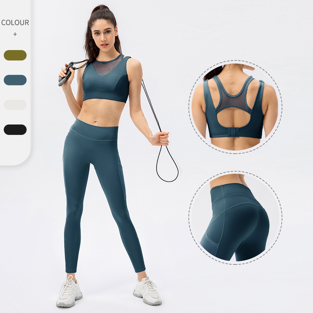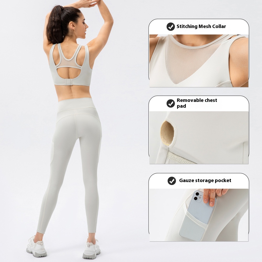 Women's Yoga Set Buckle Sports Bra Nude Feeling No Embarrassing Line Tight Pants Running Training Fitness Two-piece Set