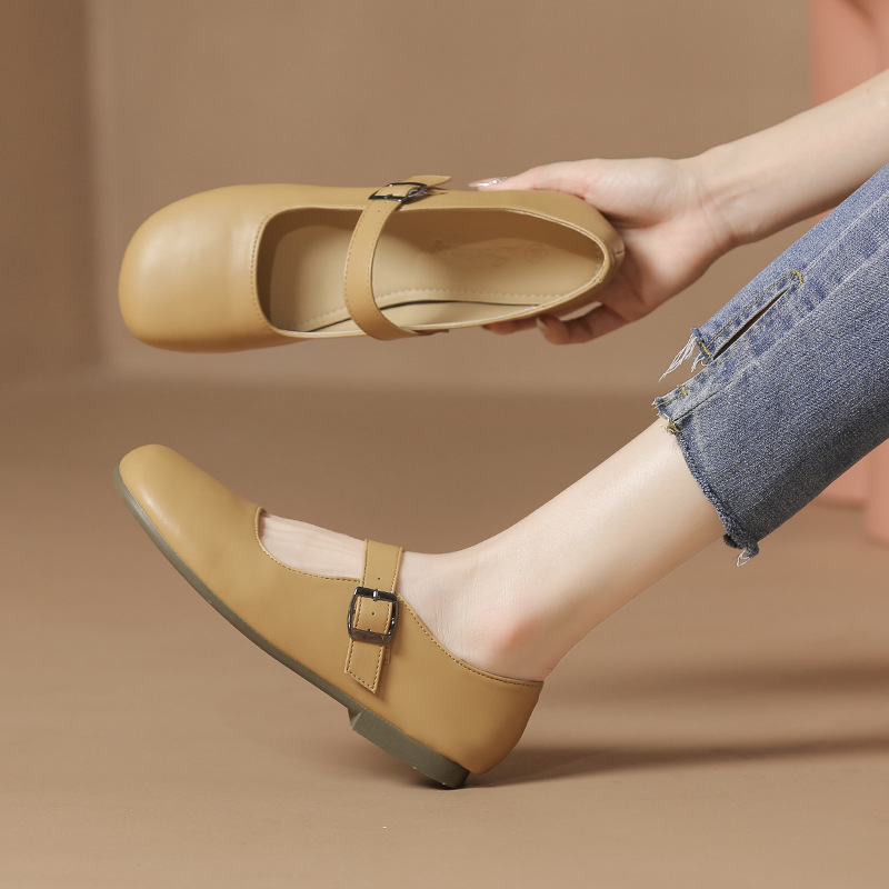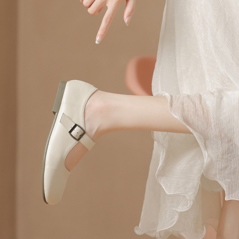French Single Shoes For Women Summer British Style Small Leather Shoes Soft Sole Toe Shoes Mary Jane Women's Shoes With Skirt