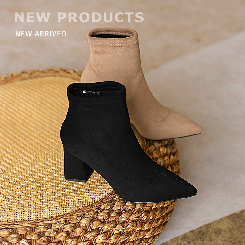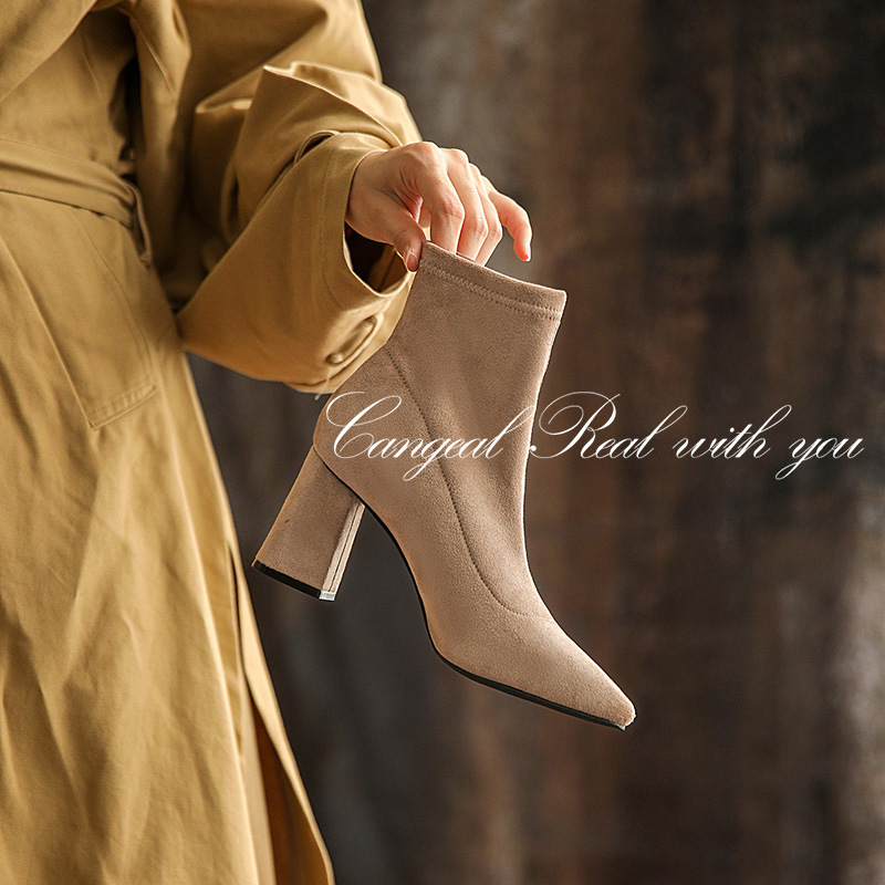 Generation Beauty Autumn And Winter Chunky Heel Elastic Ankle Boots High Heel Single Boots Women's Boots Socks Boots Slim Boots293200