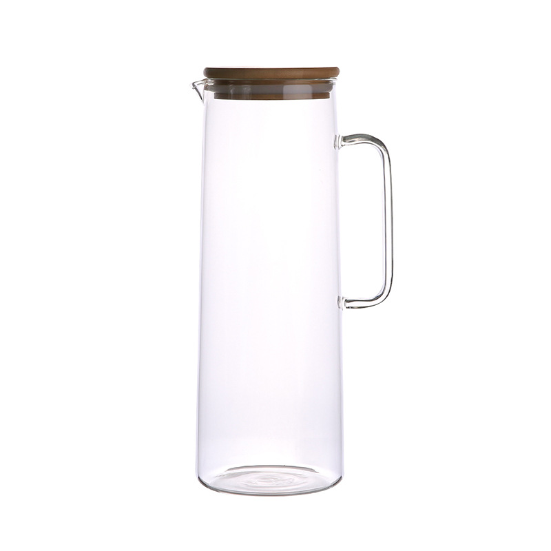 Nordic Style Japanese Bamboo Lid Glass Cold Water Kettle Heat-resistant High Temperature Large Capacity Teapot Explosion-proof Cold Water Kettle Juice Pot
