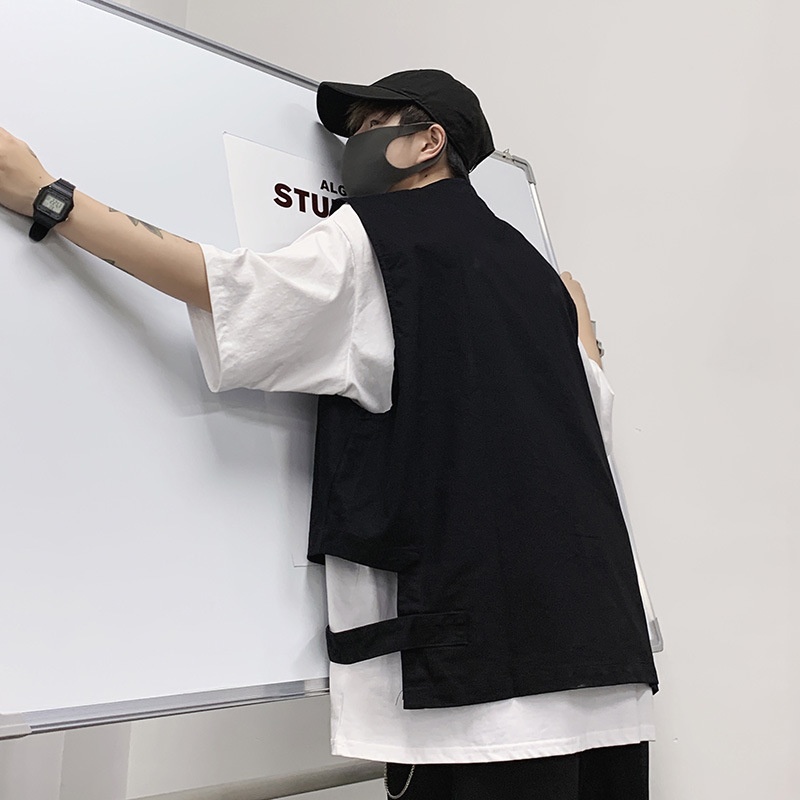 Hong Kong Style Brand Irregular Deconstruction Outer Wear Sleeveless Vest Men's Korean Styley Personality Matching Workwear Jacket Vest