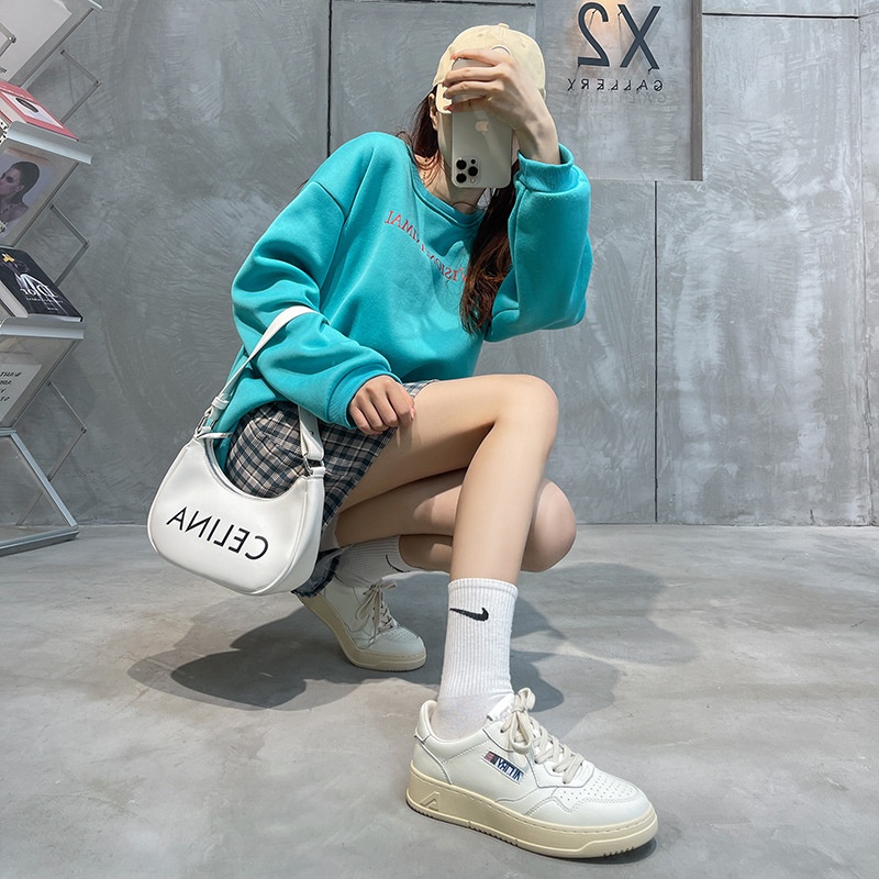 Grape Mom White Shoes Street Shooting Niche All-match Spring Genuine Leather Casual Sports Dad Shoes For Women