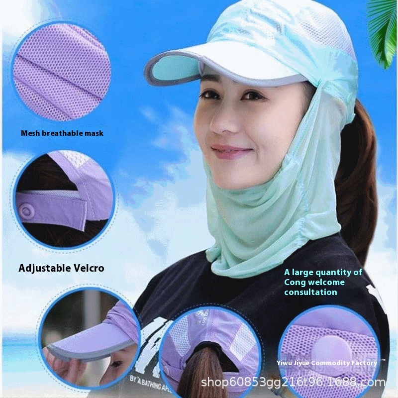 Summer Sun Protection Neck Protection Quick-drying Tea Hat Fishing Hat Veil Hat Two-in-one Folding Peaked Hat Sun Hat