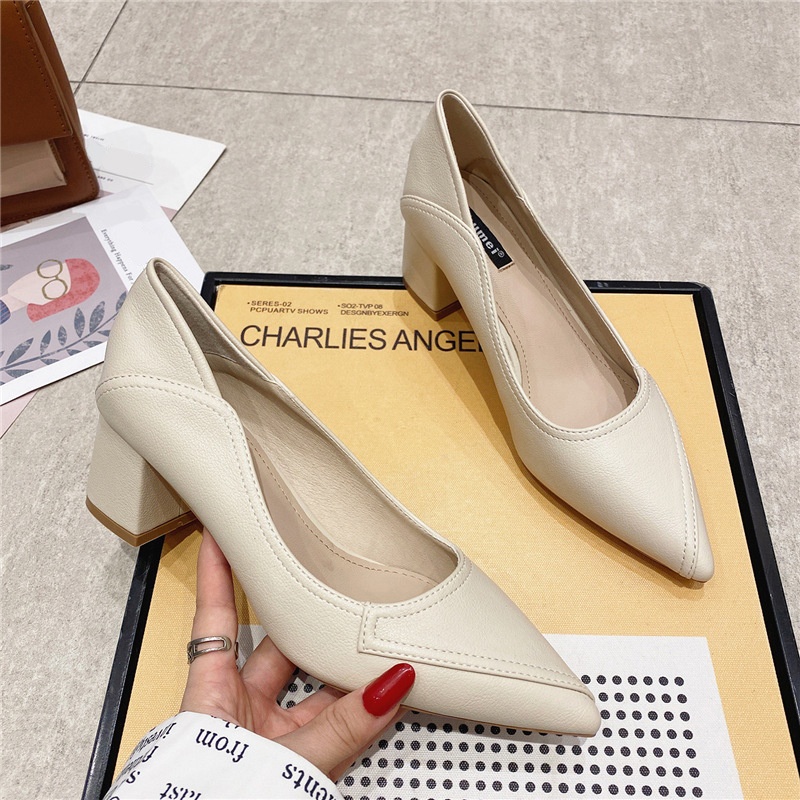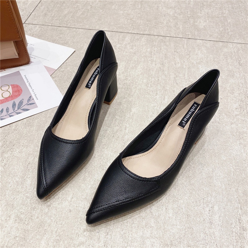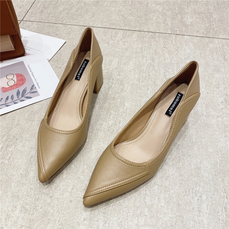 555-1 Pointed Toe Thick Heel Shallow Mouth Women's Single Shoes Commuting Simple Professional Work Shoes Daily Comfortable High Heels Women