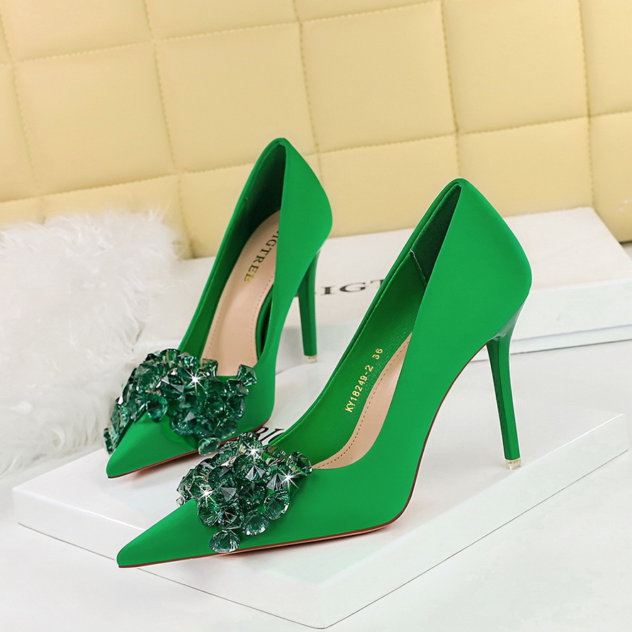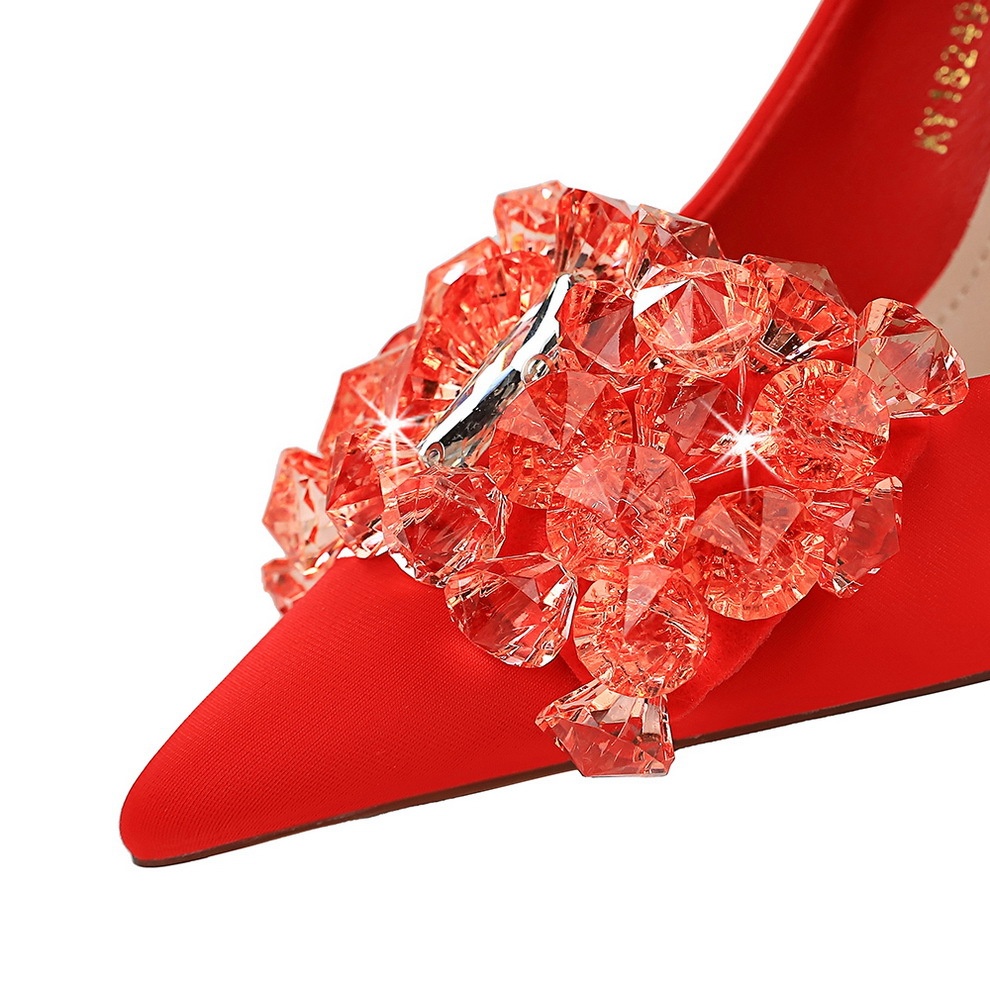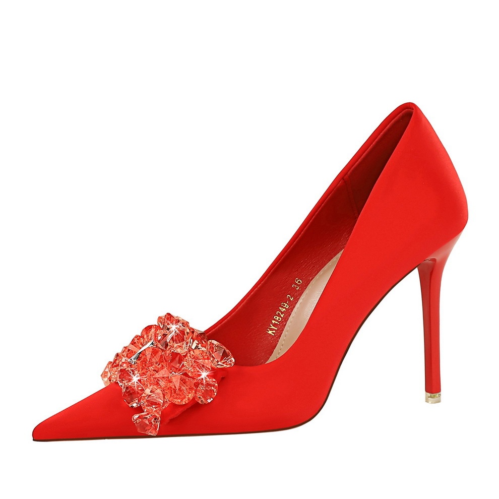 18249-H27 European And American Style Banquet High Heels Women's Shoes Ultra-high Heels Stilettos Satin Shallow Mouth Pointed Toe Single Shoes Wedding Shoes