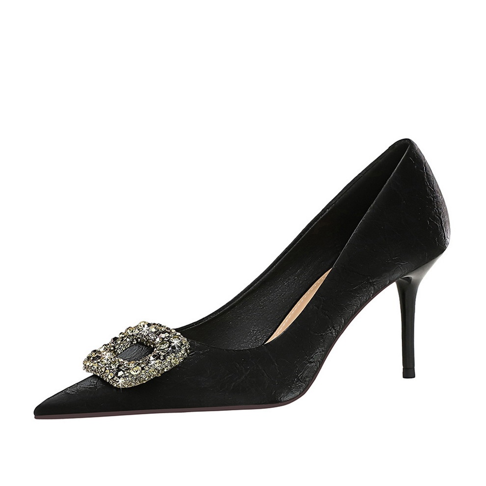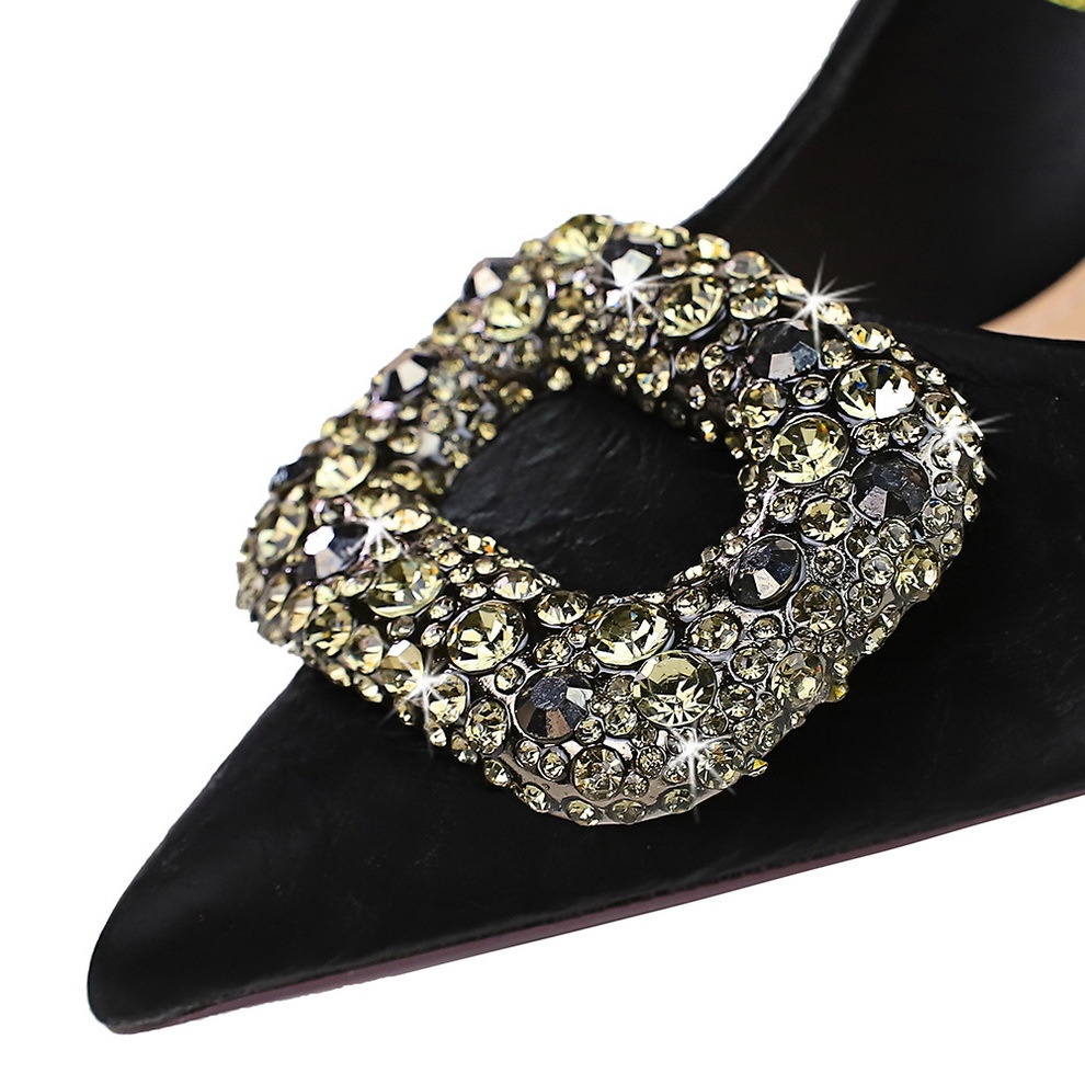 7239-AK83 European And American Style Fashion Banquet Women's Shoes Stiletto High Heels Shallow Mouth Pointed Toe Rhinestone Metal Buckle Single Shoes For Women
