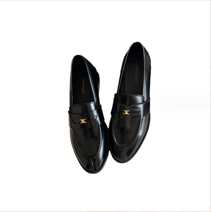 Grape Mom's Letter From London~Round Head Small Gold Coin Lazy British Style Genuine Leather Loafers Women's Small Leather Shoes