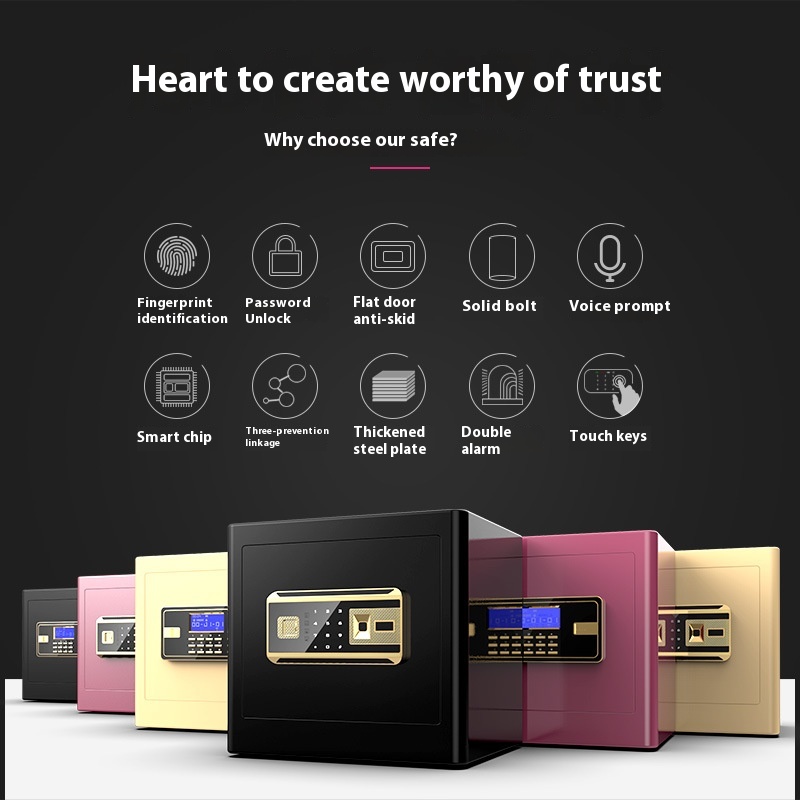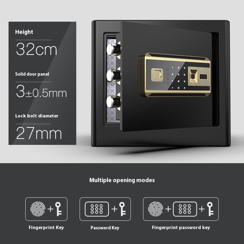 Safe Home Small Bedside32cm30cm Fingerprint Password Safe Office All Steel In-wall Safe Box Bed