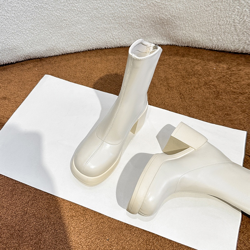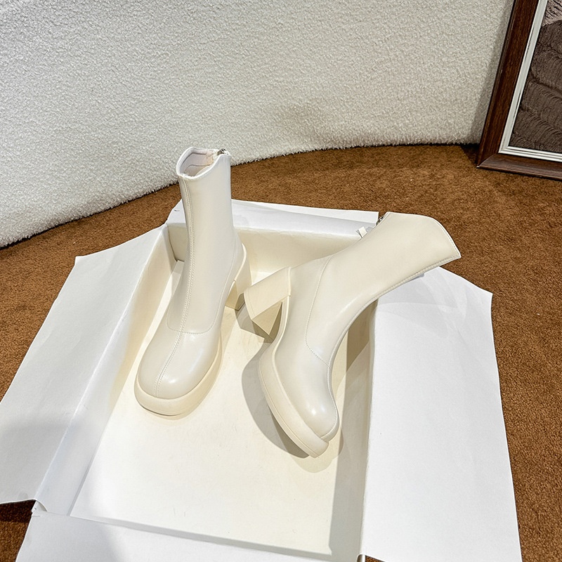 White Doc Martens Women's Autumn And Winter Thick Soled Short Boots To Slim And Increase Thick Heel Ankle Boots Women
