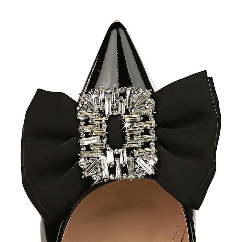 1961-H32 European And American Style Light Luxury Fashion Banquet Women's Shoes Stilettos,Medium Heels,Shallow Mouth,Pointed Toe,Rhinestone Bowknot Single Shoes