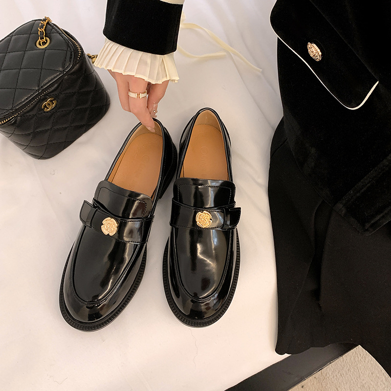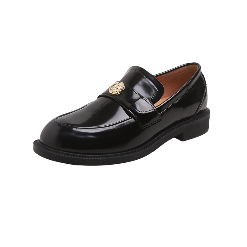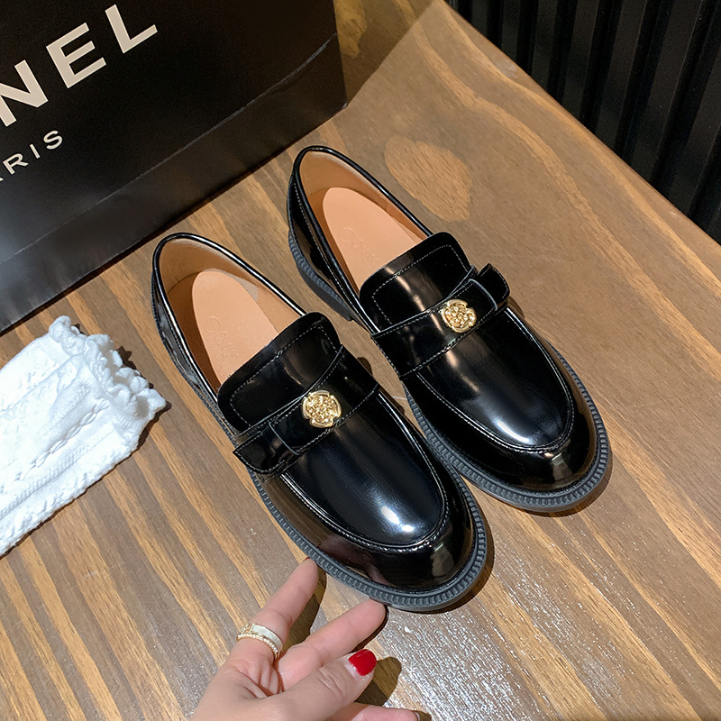 Spring And Autumn Style College Style Small Gold Coin Buckle Thick-soled Loafers For Women Real Leather Single Shoes Small Leather Shoes
