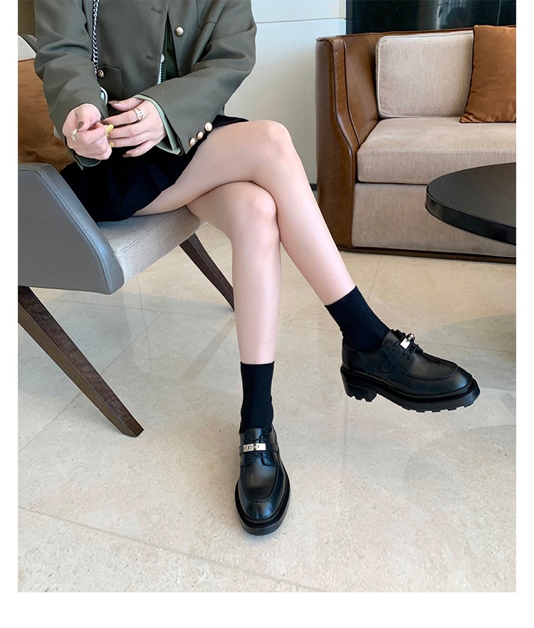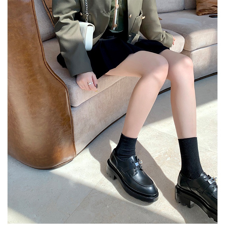 Grape Mom's British Style Lock Loafers Thick Bottom Thick Heel Lace-up Oxford Leather Shoes For Women Autumn