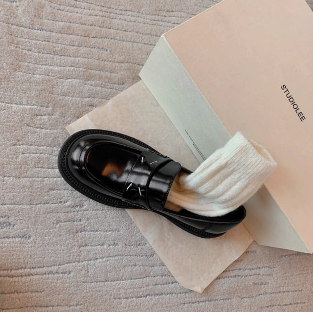 [Welfare Model]Grape Mom's Fashionable Genuine Leather British Round Toe Small Thick Bottom Loafers For Women