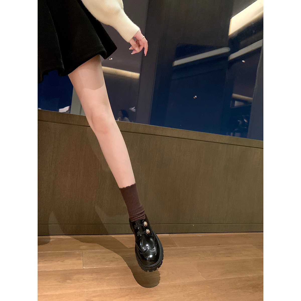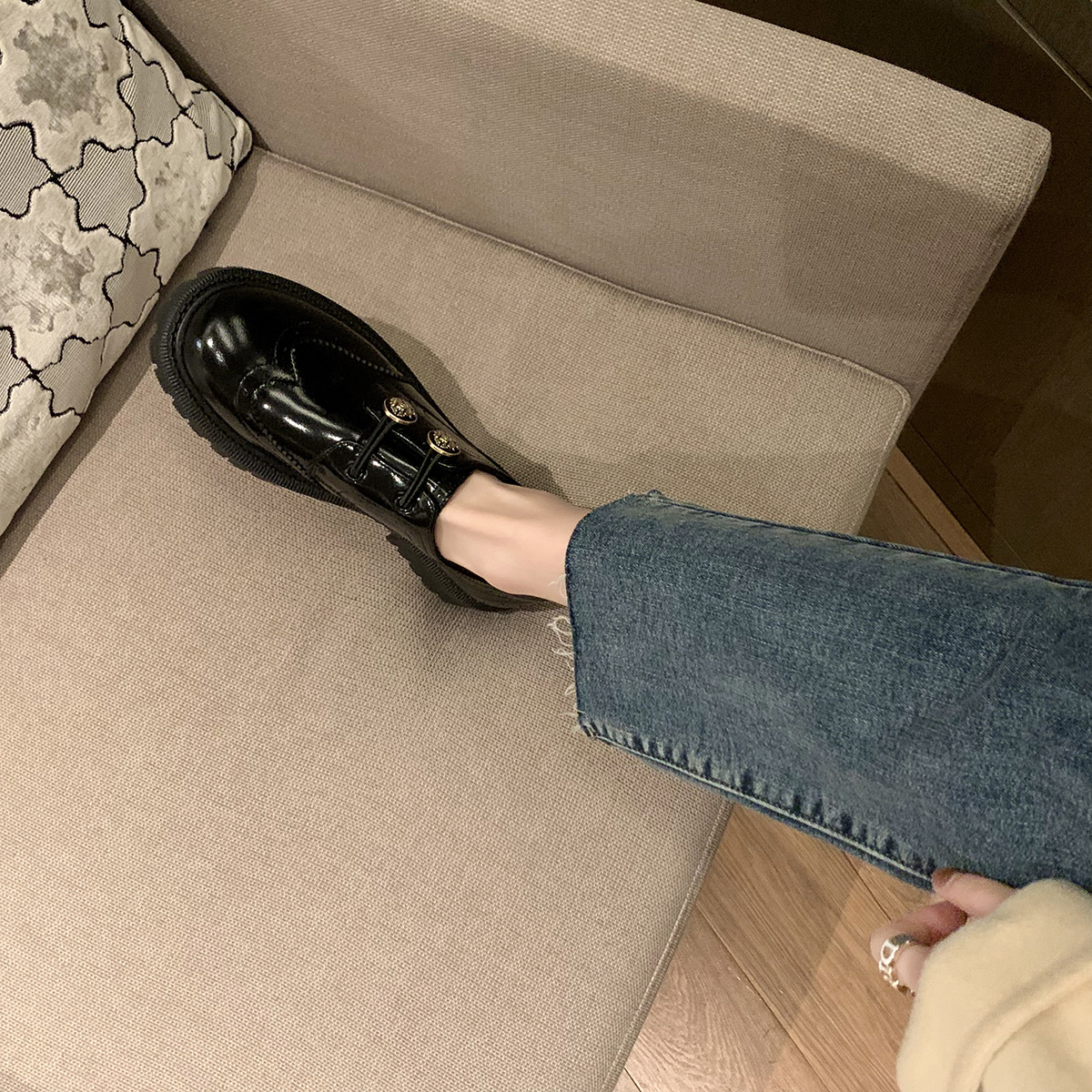 Grape Mom's Hepburn Style Thick-soled Thick-heeled Carved Gold-buckle Loafers Small Leather Shoes Women's Real Leather Single Shoes Spring And Autumn Style