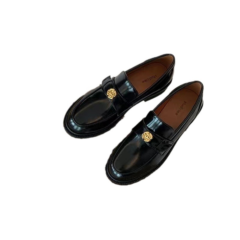 Su Yinyin's Camellia Love~Small Gold Coin Buckle Thick-soled Loafers For Women Real Leather Shoes Small Leather Shoes