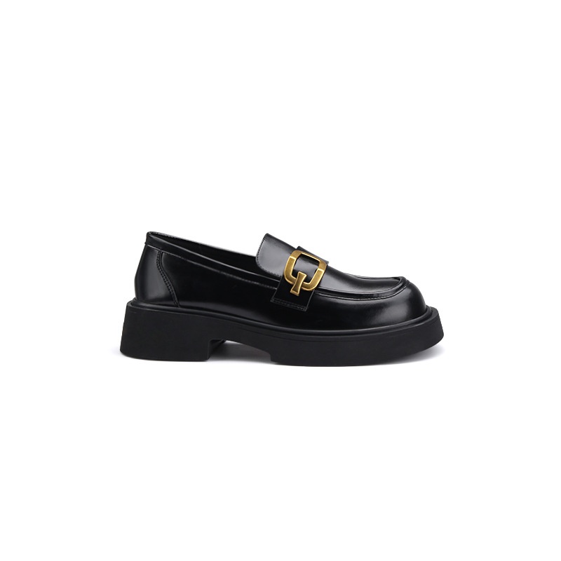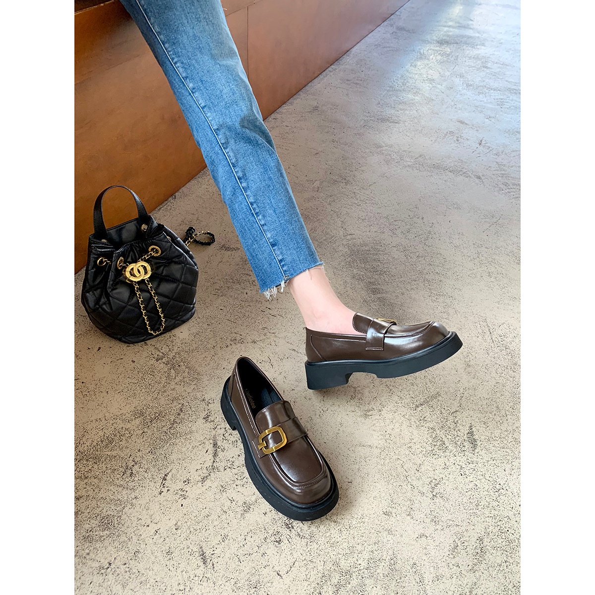 Grape Mom's British Style One-strap Square Buckle Thick Bottom Thick Heel Round Head Genuine Leather Loafers Small Leather Shoes For Women Spring