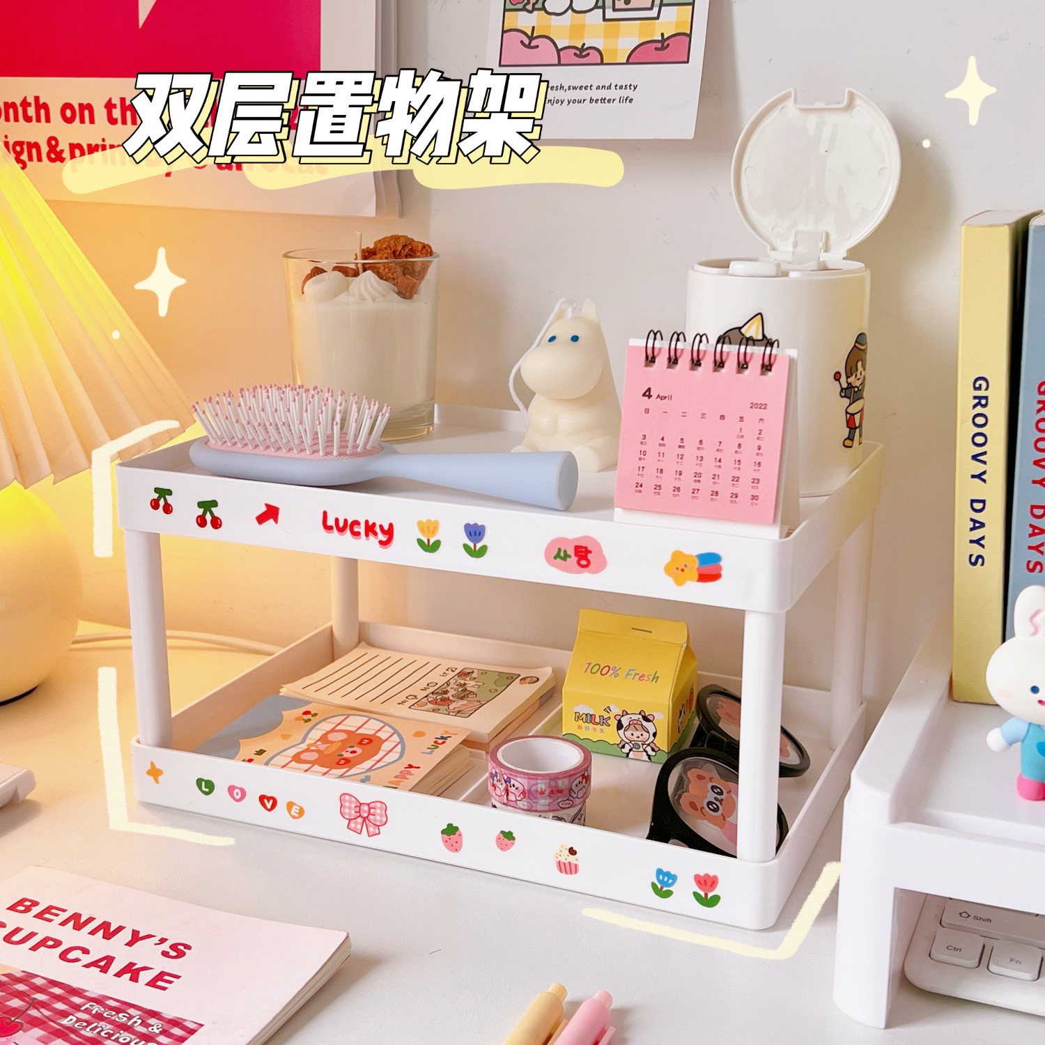 Double-layer Desktop Storage Rack Bedroom Cosmetics Office Sundries Storage Rack Student Dormitory Artifact Small Storage Rack