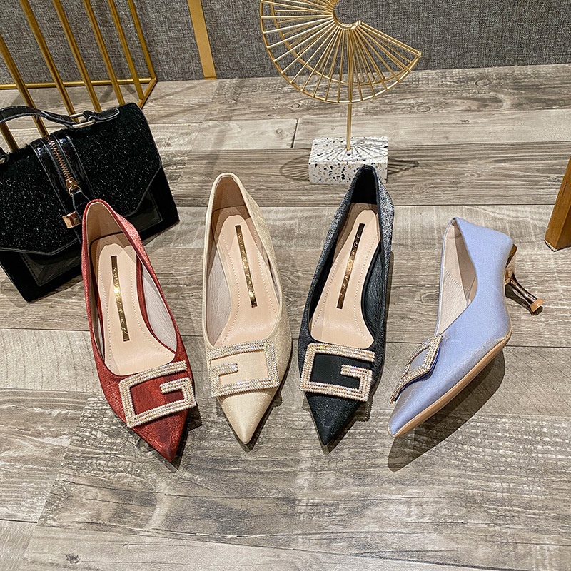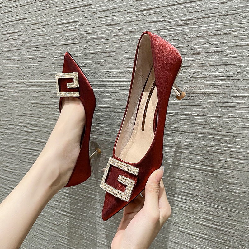 628-33 Korean Version Of The Internet Celebrity Bridesmaid Wedding Shoes Professional Women's High Heels Pointed Toe Stiletto Shallow Mouth Fashion Satin Single Shoes For Women