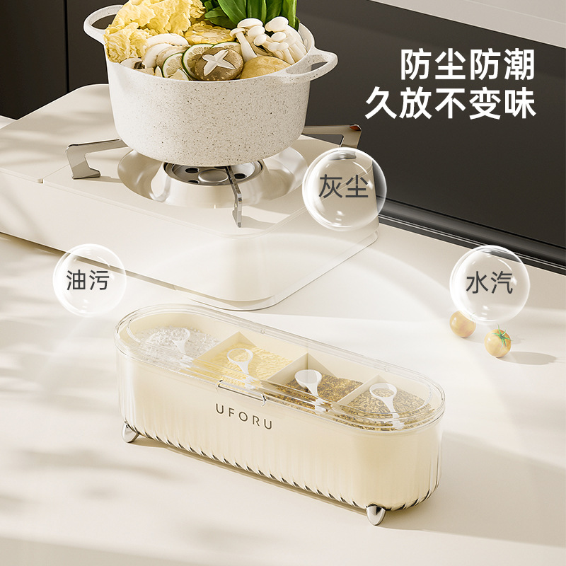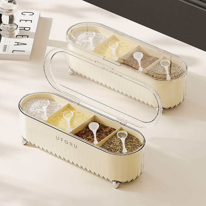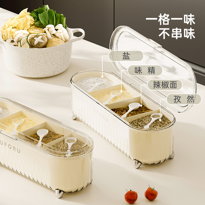 Seasoning Box Integrated Multi-grid Household Food Grade Seasoning Storage Box With Spoon Kitchen Countertop With Cover Waterproof And Moisture-proof Seasoning