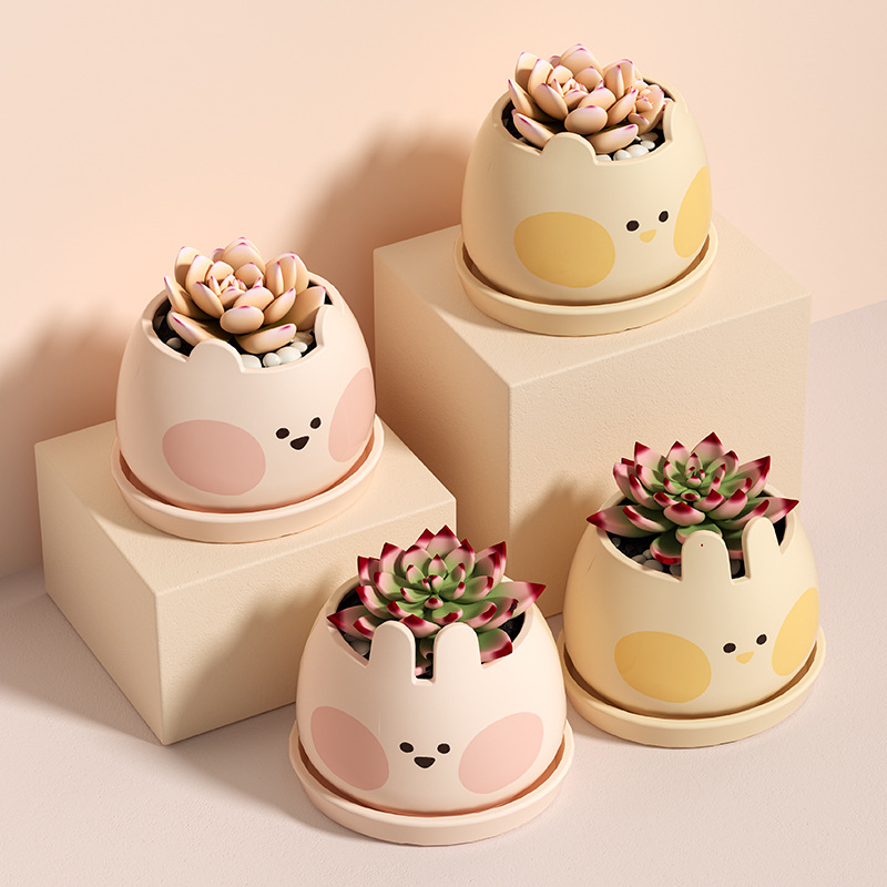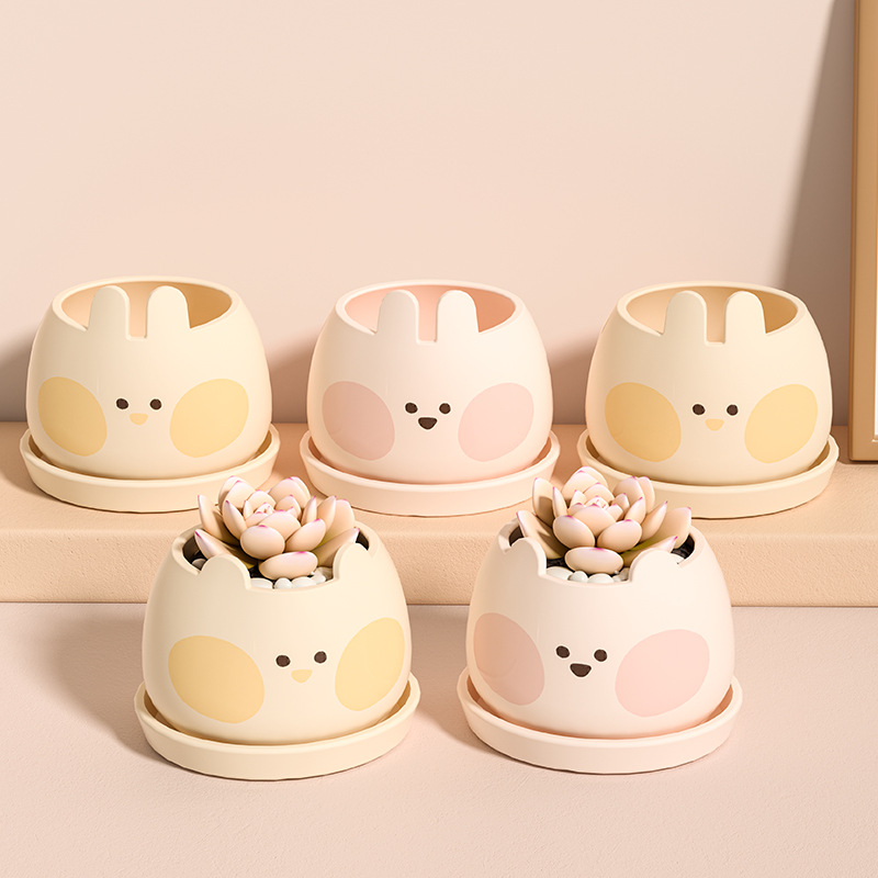 Creative Plastic Cartoon Cute Pet Fleshy Flower Pot With Bottom Support Cute Home Balcony Decoration Green Plant Potted Belt
