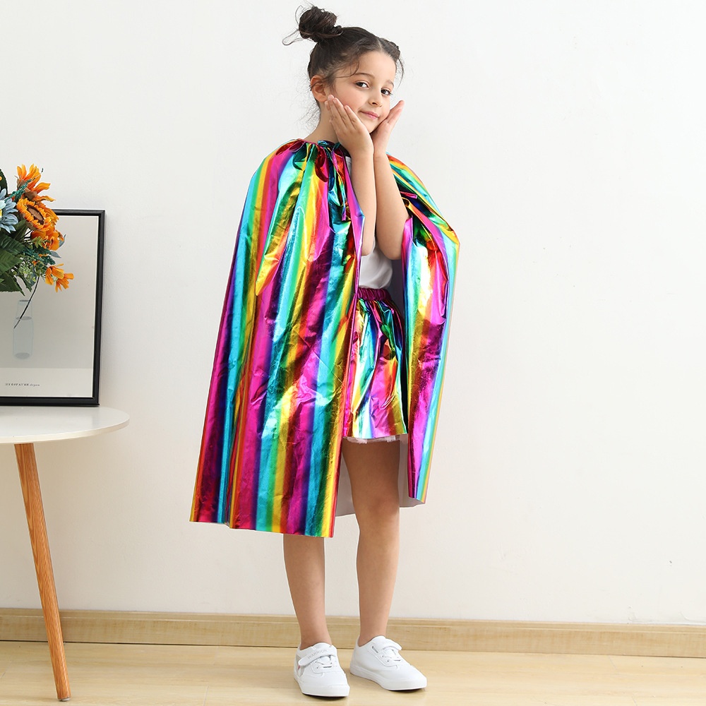 Halloween Children's Clothing Rainbow Children's Cloak For Men And Women To Send Crown Tiara Cospaly Princess Cloak Party Costume