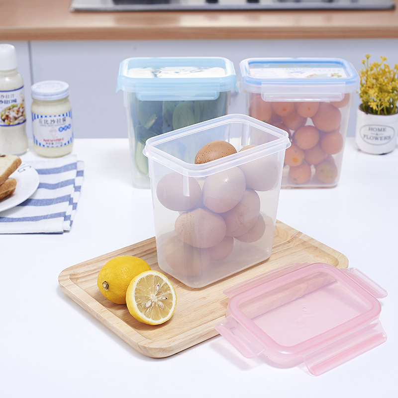 Buckle Transparent Rectangular Kitchen Refrigerator Fruit And Vegetable Fresh-keeping Box Moisture-proof Sealed Snack Storage Box Grain Can