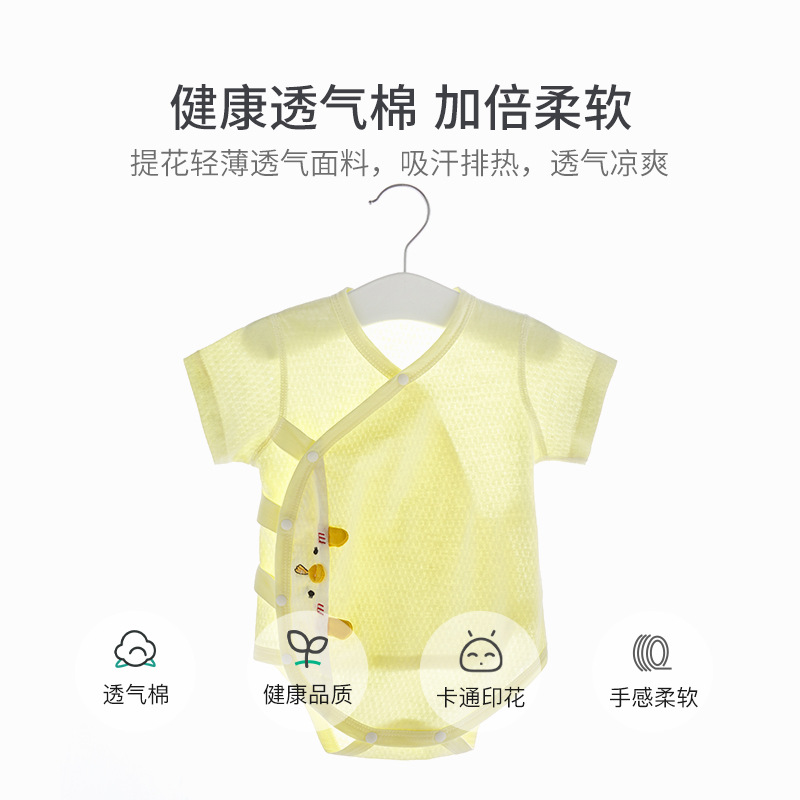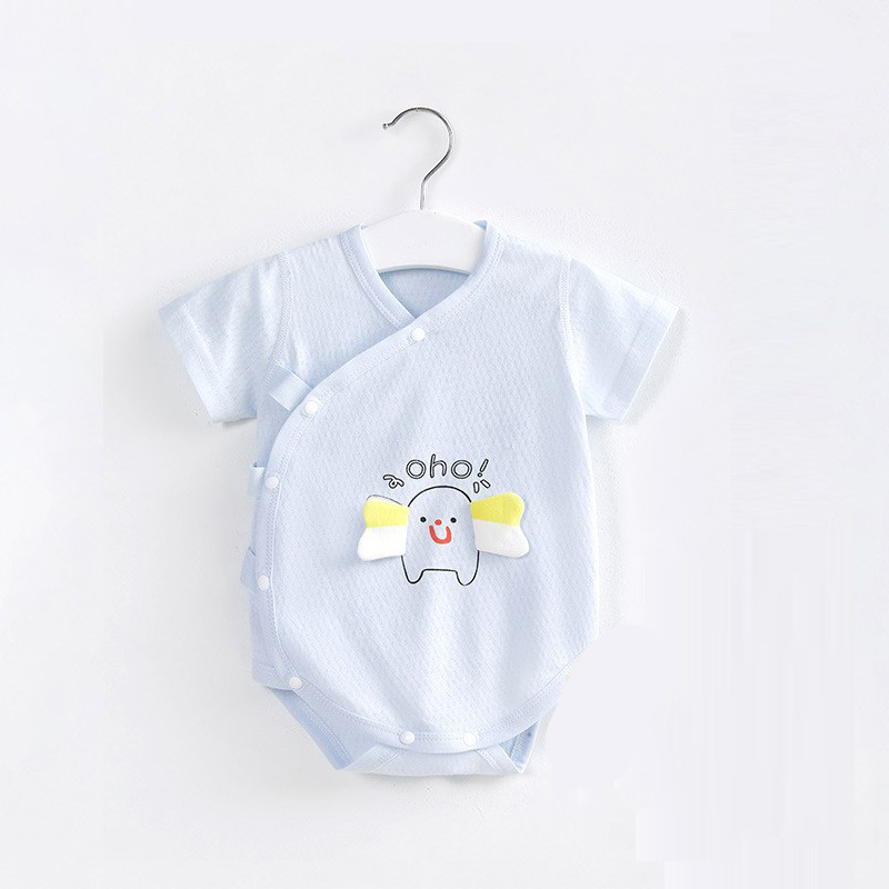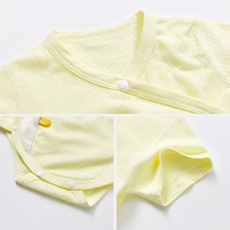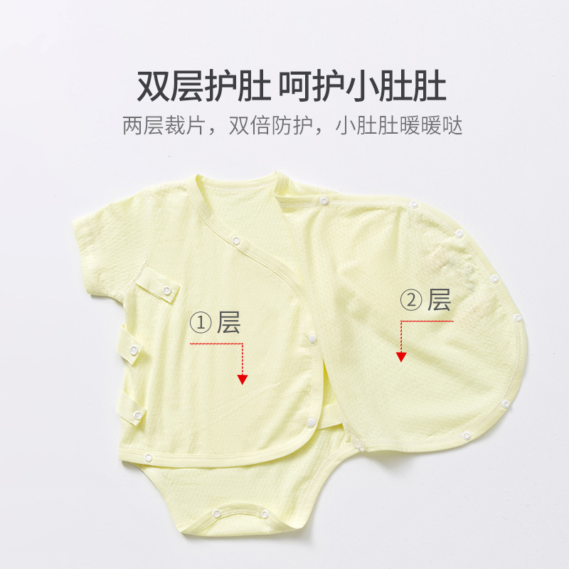 Baby Double-layer Belly Protection Fart Clothes Pure Cotton Boneless Summerborn Clothes One-piece Baby Pajamas Triangle Romper