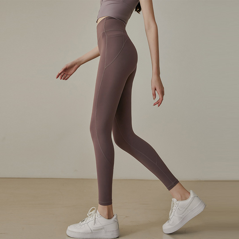 No Embarrassing Line Pocket Yoga Pants Women's High Waist Hip Lifting Running Sports Pants High Elastic Tight Fitness Pants Trousers Summer