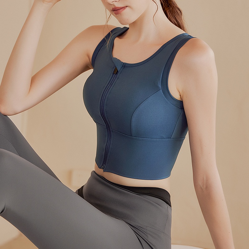 High-strength Shockproof Gathered Large Size Fitness Sports Bra Summer Beautiful Back One-piece Bra Front Zipper Sports Underwear Women