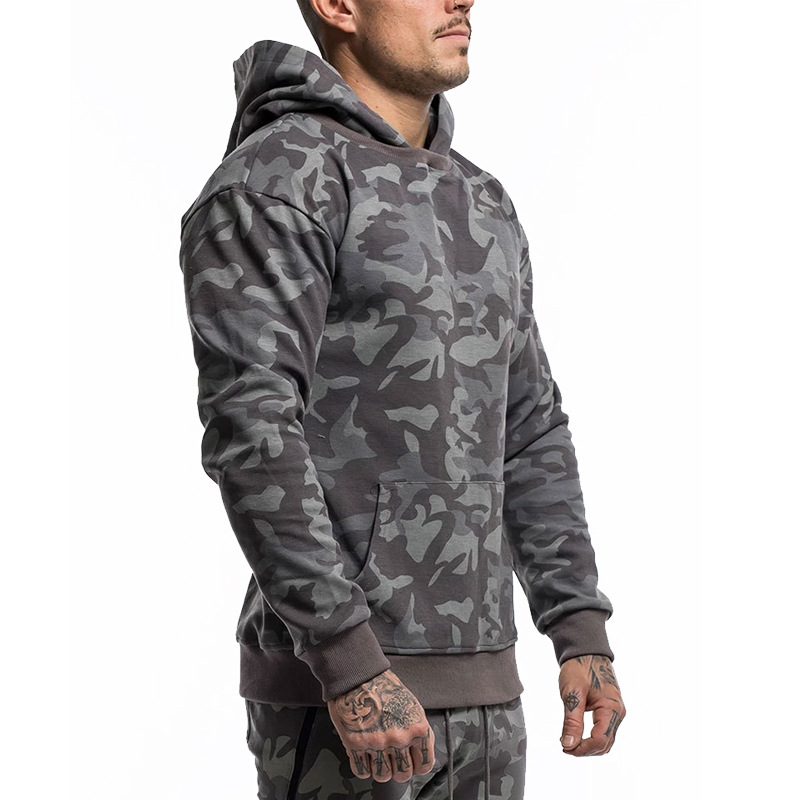 Muscle European And American Brothers Camouflage Sports Casual Hooded Sweatshirt Men's Spring And Autumn Fitness Hoodie
