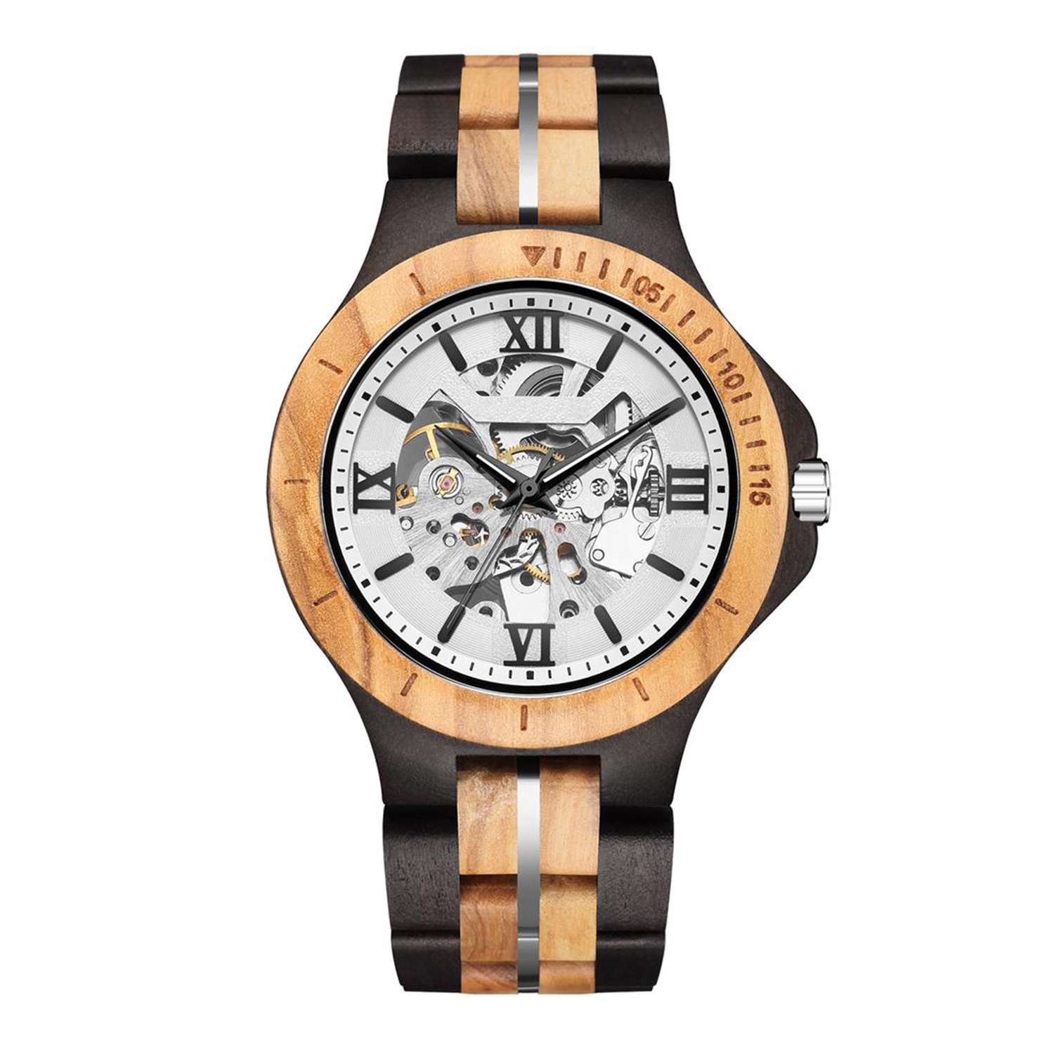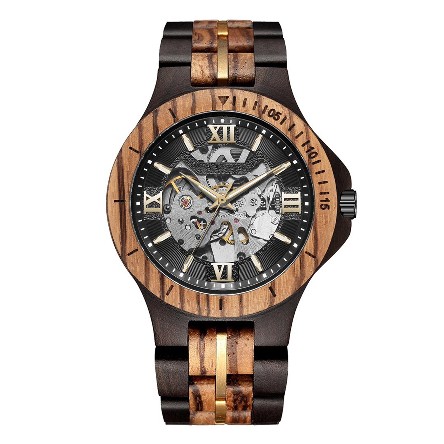 Kunhuang Men's Mechanical Watch Fully Automatic Pure Wood Handmade Personality Hollow Mechanical Steel Grain Wooden Watch Men
