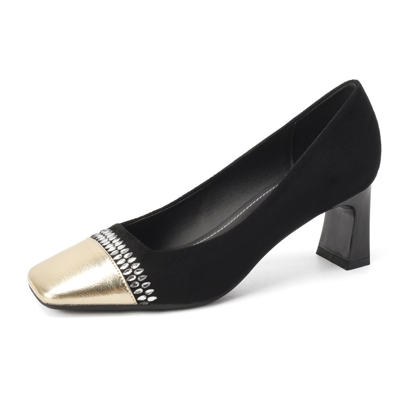 8375-11 One Piece Drop Shipping Korean Style Square Head Thick Heel Fashionable High Heels Winter Style Work Women's Single Shoes