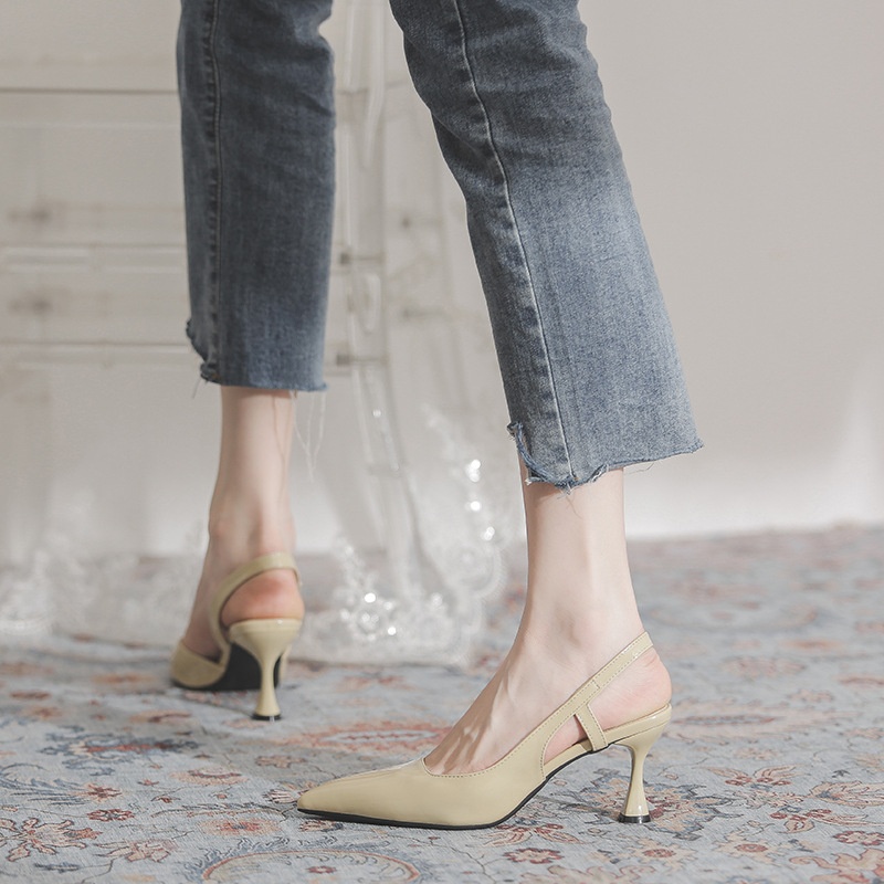 8362-B2 French Elegant Intellectual Soft Patent Leather Fashion Single Shoes Stiletto Pointed Toe Back Empty Side Empty Sandals