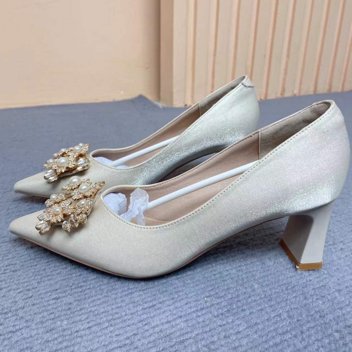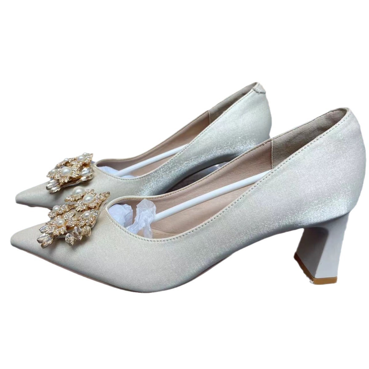 Elegant Apricot High Heels For Women Style Fairy Temperament Thick Heels Do Not Tire Feet