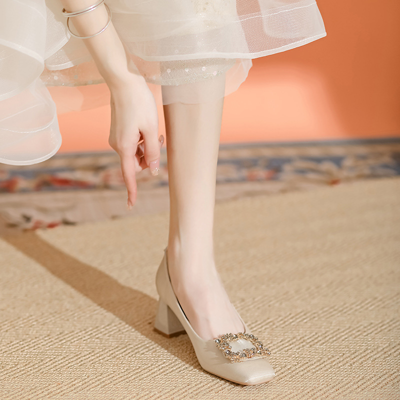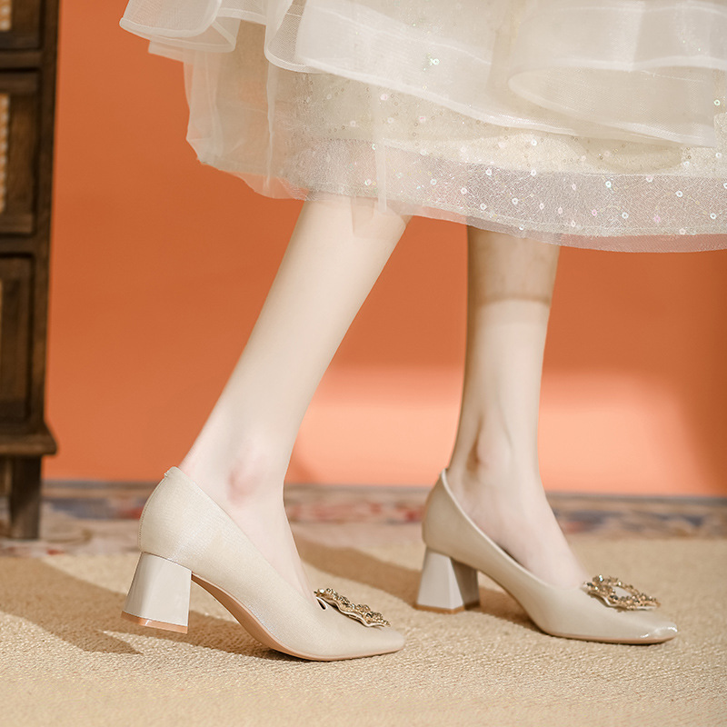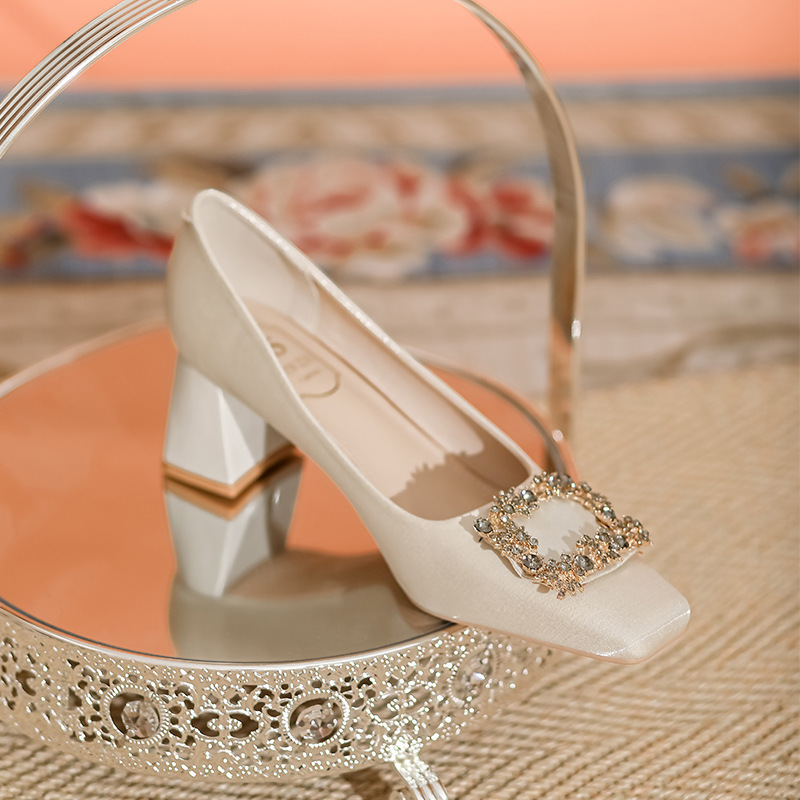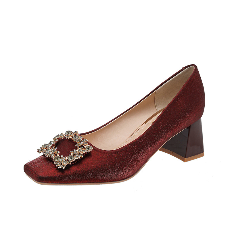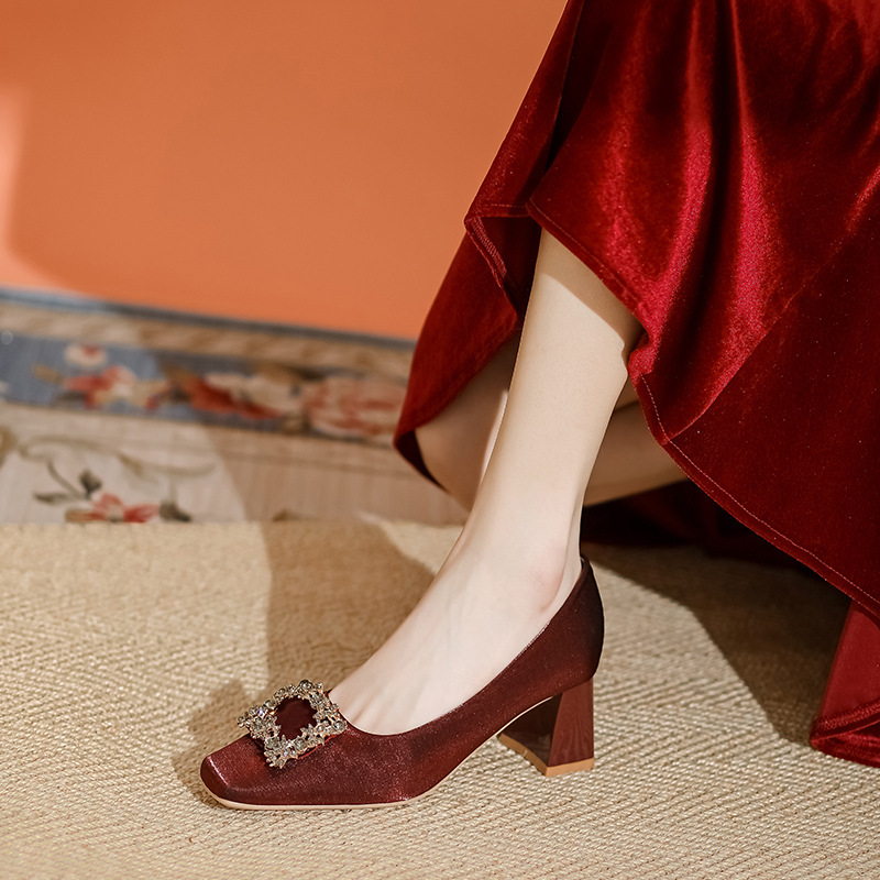 Mary Jane Shoes For Women,Spring Models,Xiuhe,No-tiring Red High Heels For Women,Xiuhe,Thick-heeled Satin Shoes For Women