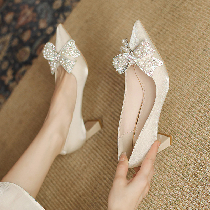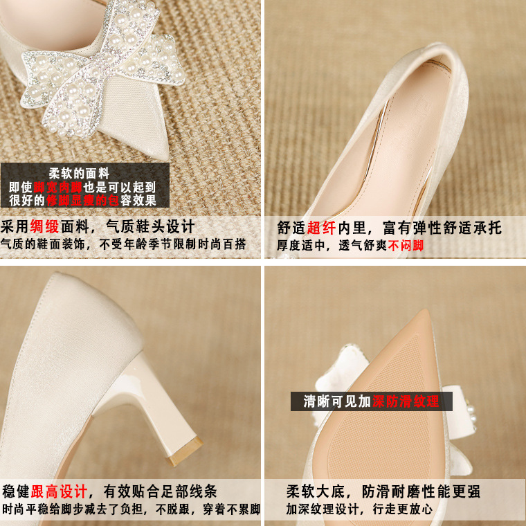 YD-21 Red Wedding Shoes Autumn Xiuhe Wedding Dress Two-wear Chinese Bridal Shoes Thick Heels Not Tiring Shoes