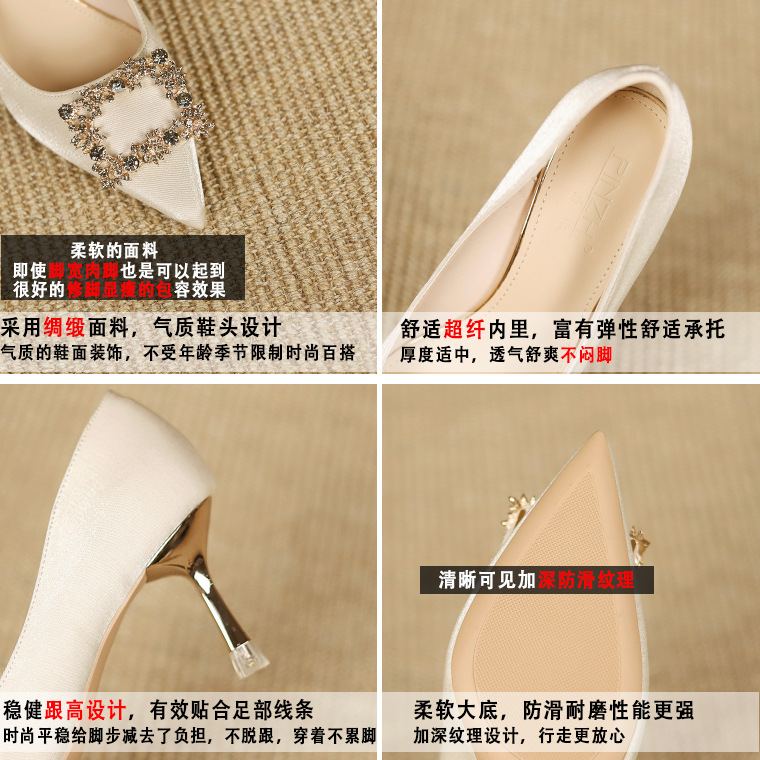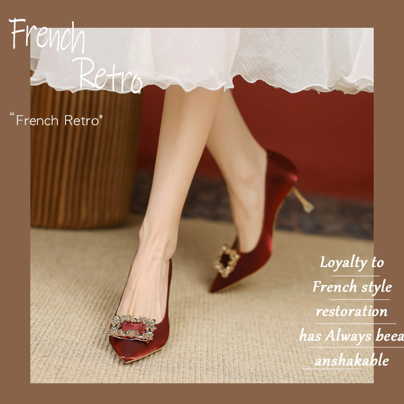 9078-42 Bridal Shoes Wedding Shoes Xiuhe Wedding Dress Two Wear Red Pointed High Heels Women's Stilettos Do Not Tire Feet