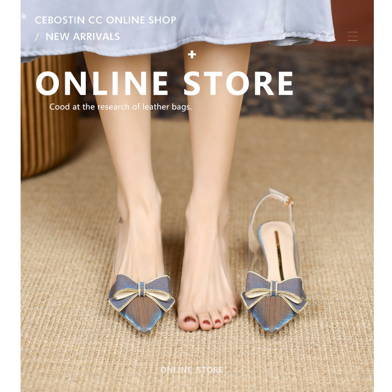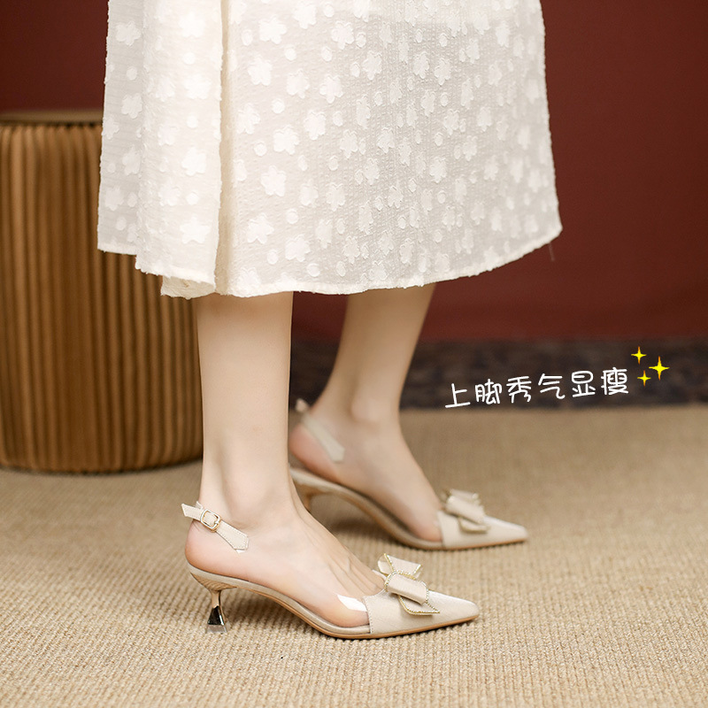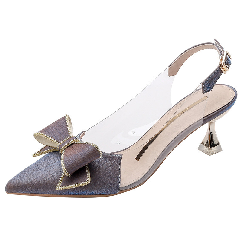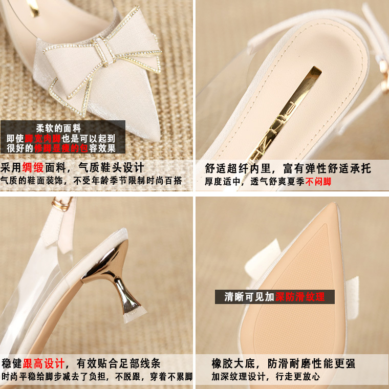 8088-19 Bowknot Transparent Buckle Sandals For Women Summer Style Girls Small Fresh Closed Toe Stiletto Sandals