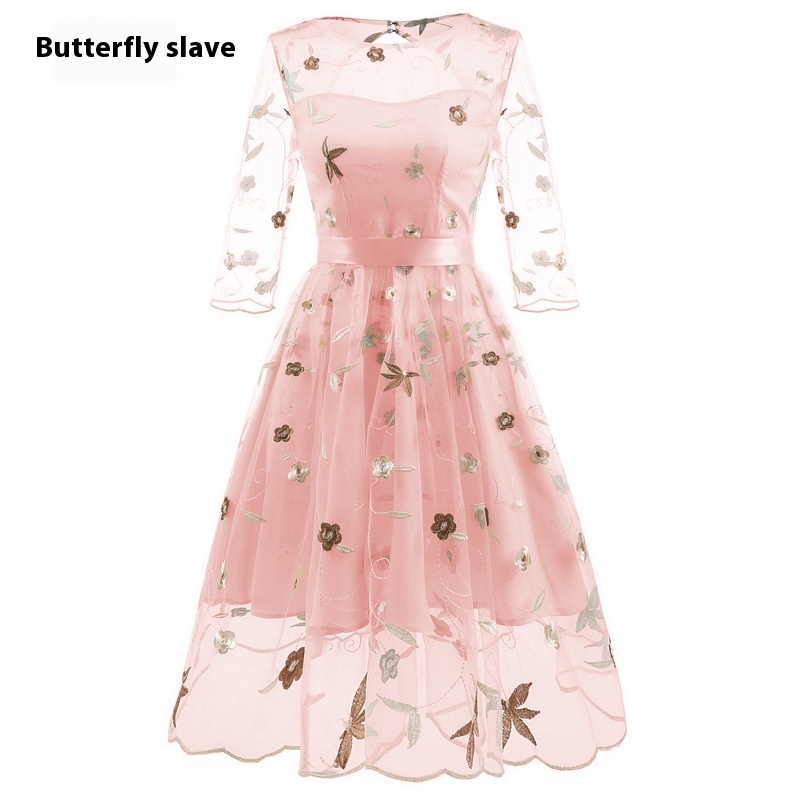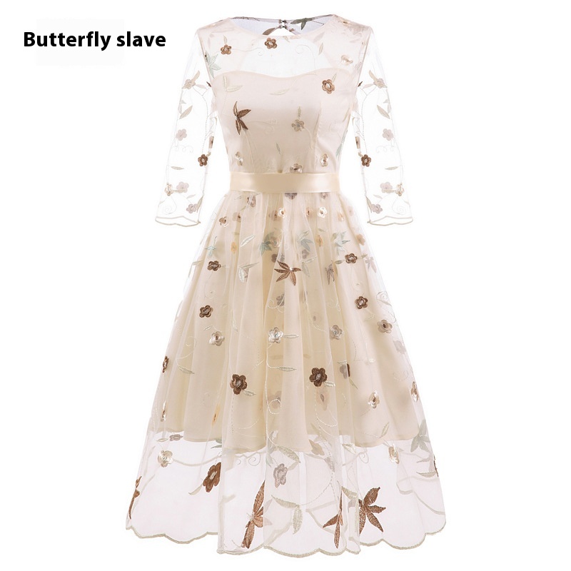 Autumn And Winter Foreign Trade Women's Clothing Hot-selling Dress Lace Embroidery Retro Style Puffy Dress
