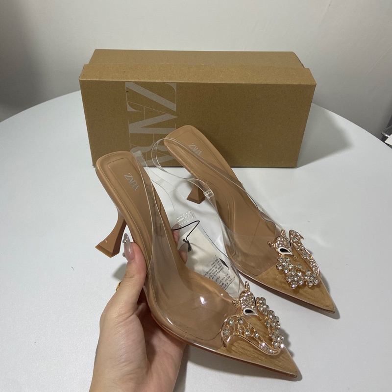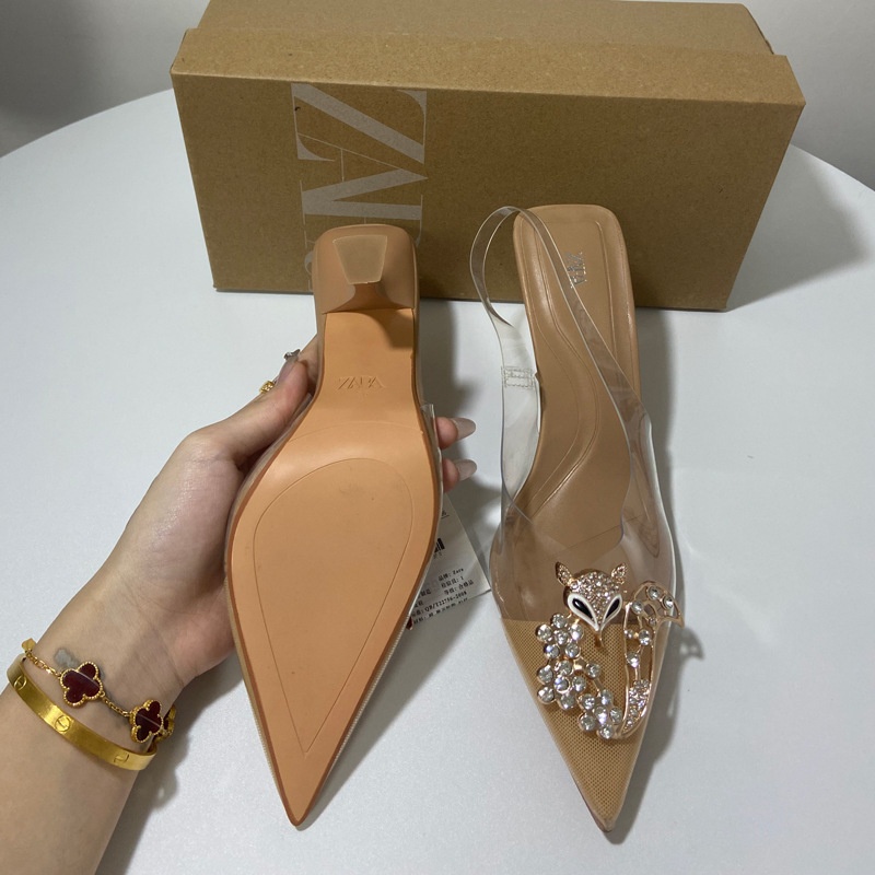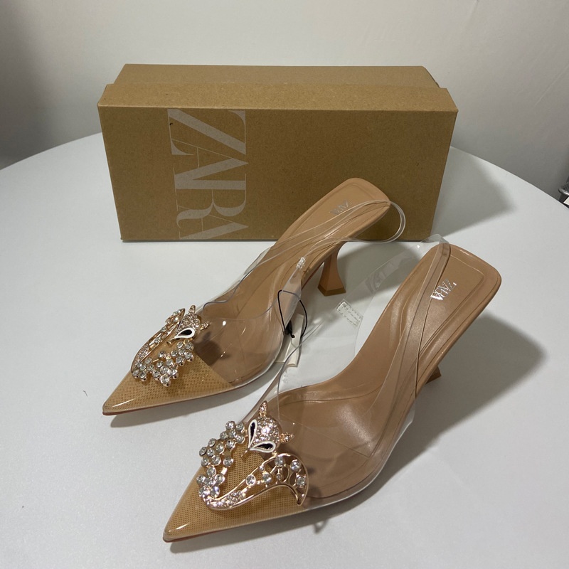 ZAAutumn Pointed Metal Transparent Straps PVCDecoration Temperament Shallow Mouth Fashion High Heel Sandals For Women