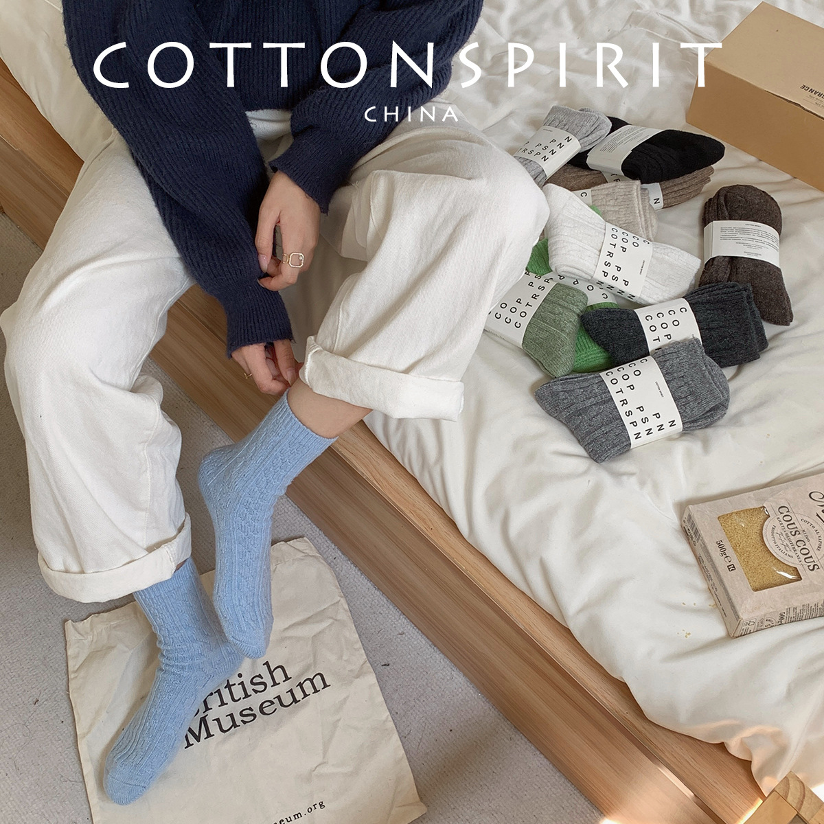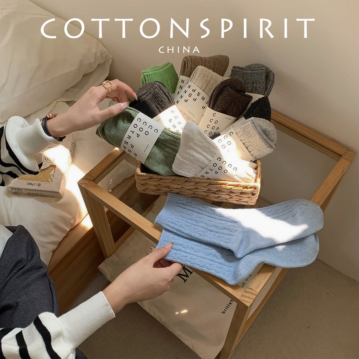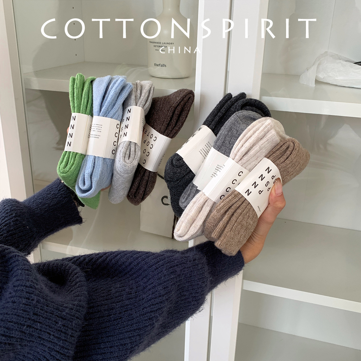 Twisted Wool Mid-tube Socks For Women Solid Color Thick Warm College Style Japanese Autumn And Winter Thick Needle Wool Socks