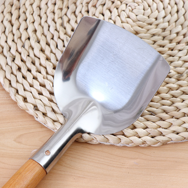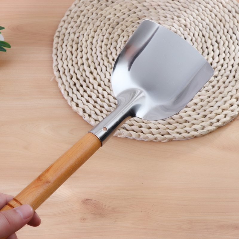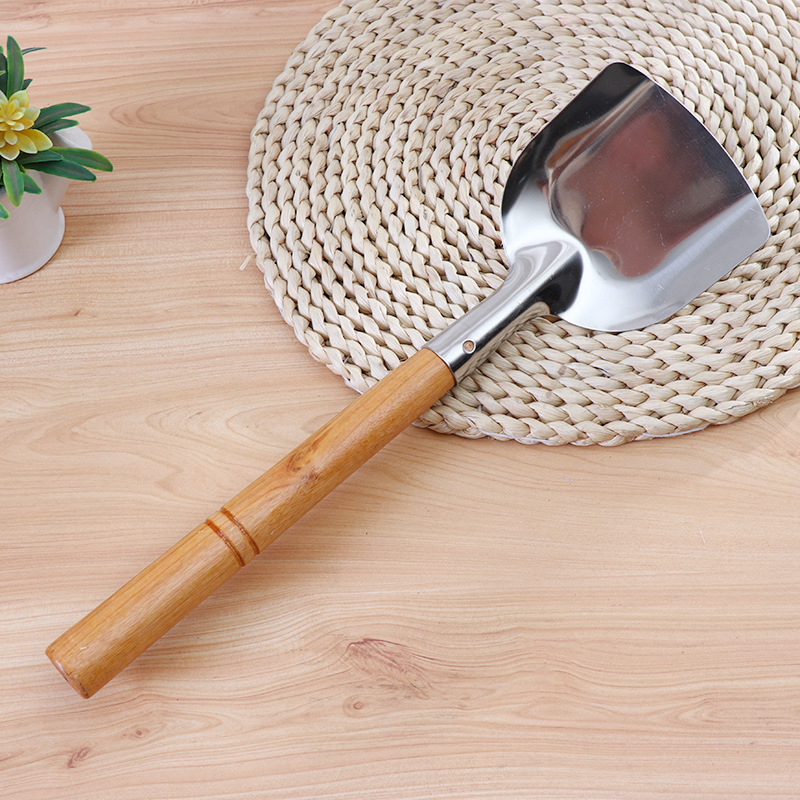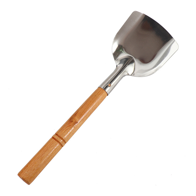 Household Wooden Handle Spatula Chinese Style Stainless Steel Cooking Spatula Traditional Old-fashioned Small Wooden Iron Spatula