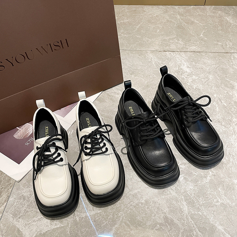 139-15 Thick-soled Small Leather Shoes College Style Lace-up Loafers Widened And Fat Large Size Women's Shoes41-43