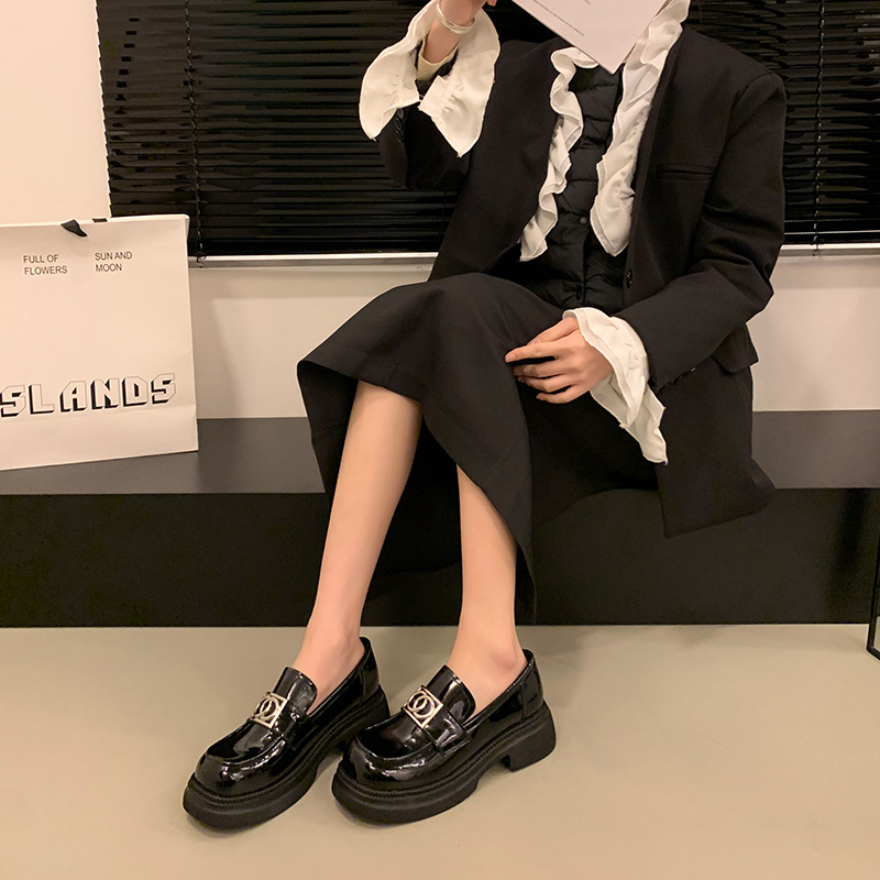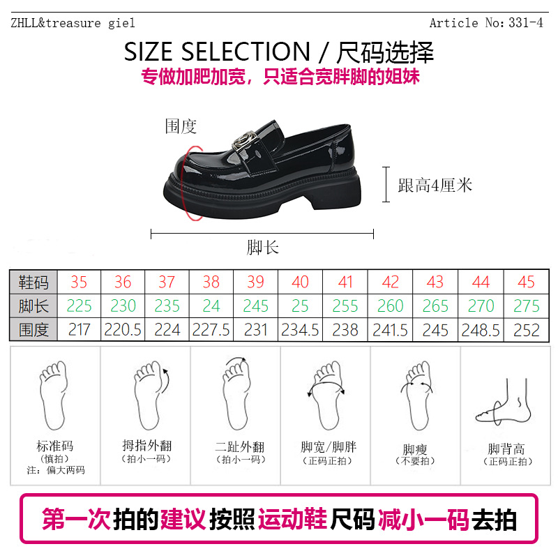 A1002-2 Thick-soled Loafers British Style Small Leather Shoes Wide Feet Fat Large Size Women's Shoes41-43