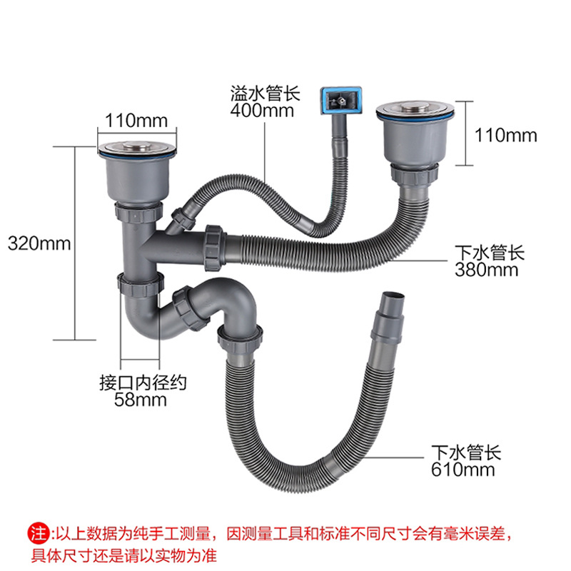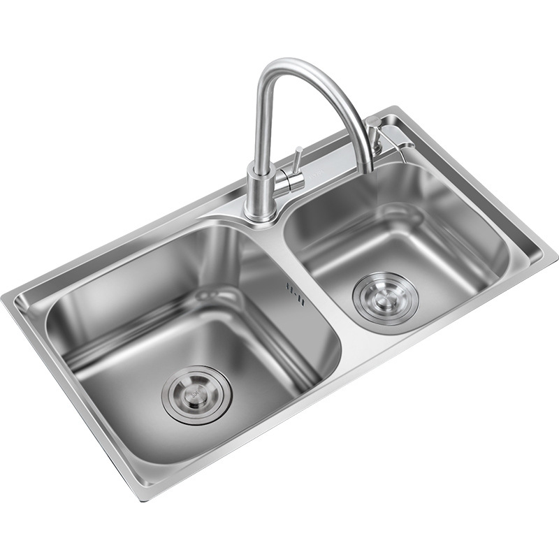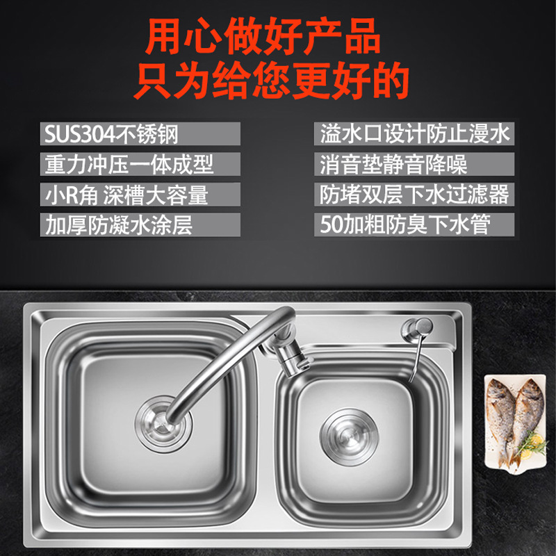 304 Stainless Steel Vegetable Sink Home Kitchen Double Trough Dishwashing Basin Vegetable Sink Pool Thickened Single Trough Set