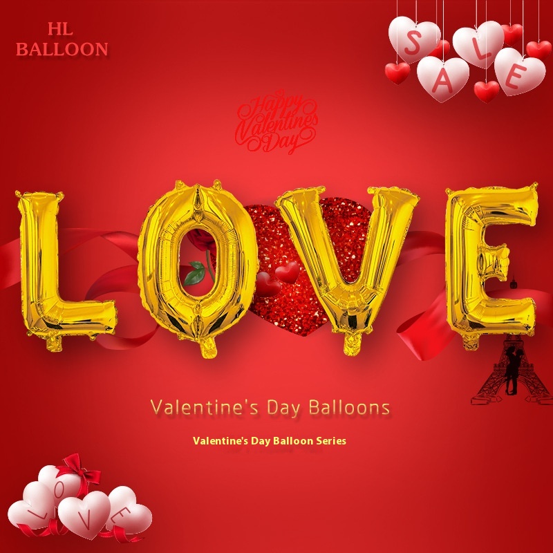 32-inch American Version Slim Letter Balloon L O V E Set Aluminum Film Balloon Valentine's Day Wedding Wedding Room Decoration