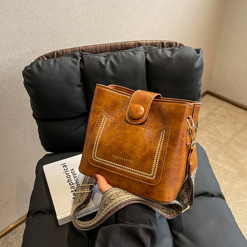 Colorful Widened Webbing Shoulder Messenger Bag Quality Versatile Retro Fashion Kraft Paper Bag For Women