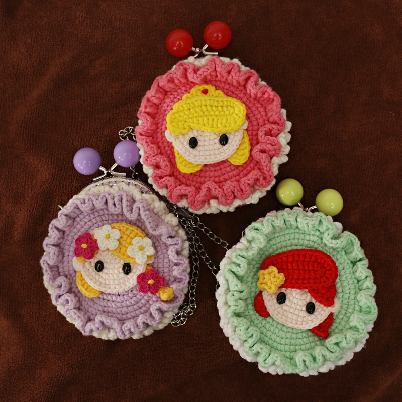 Cartoon Animation Handmade Cross-body Coin Purse Wool Woven Mouth Gold Bag Finished Exquisite Handmade Mini Bag