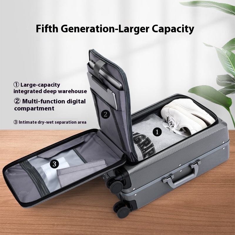 Luggage24 Inch Front Opening Trolley Case Multifunctional Travel Suitcase Aluminum Frame Password Trolley Case