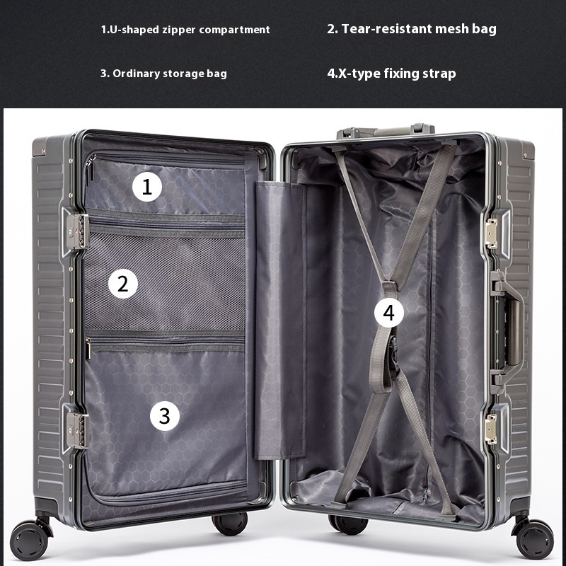 20-inch Suitcase Trolley Case For Men26-inch Anti-fall Boarding Password Case Travel Bag Aluminum Alloy Suitcase
